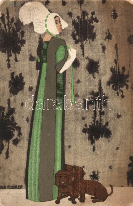 1916 Lady with Dachshunds, Wiener Werksätte No. 521. s: Mela Koehler +... https://www.darabanth.com/hu/30-Nagyaukcio/30.1/Kepeslapok/Muveszlapok~12591/1916-Lady-with-Dachshunds-Wiener-Werksatte-No-521-s-Mela-Koehler-plus-KuK-Infanterieregiment-Fr~II1844727