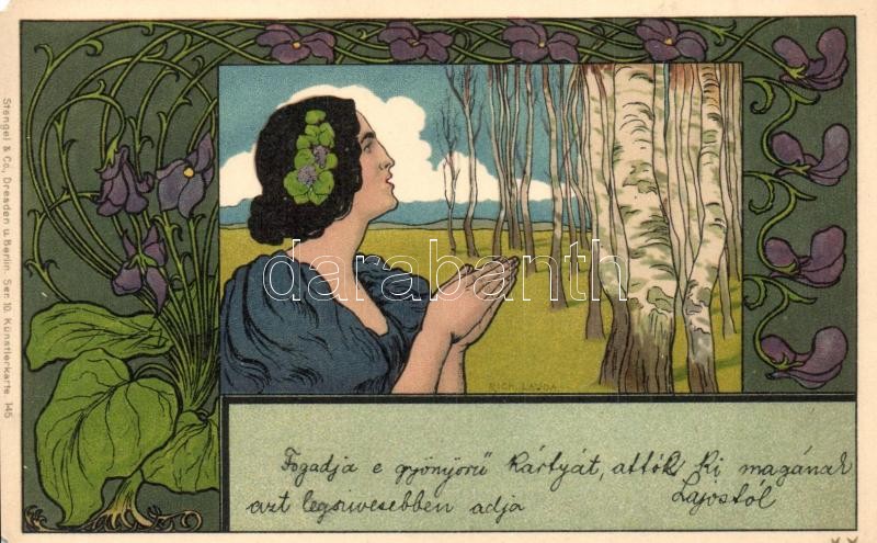 Leírás: Art Nouveau lady. Stengel & Co. Ser. 10. Künstlerkarte 145. litho s: Richard Lauda (EM)