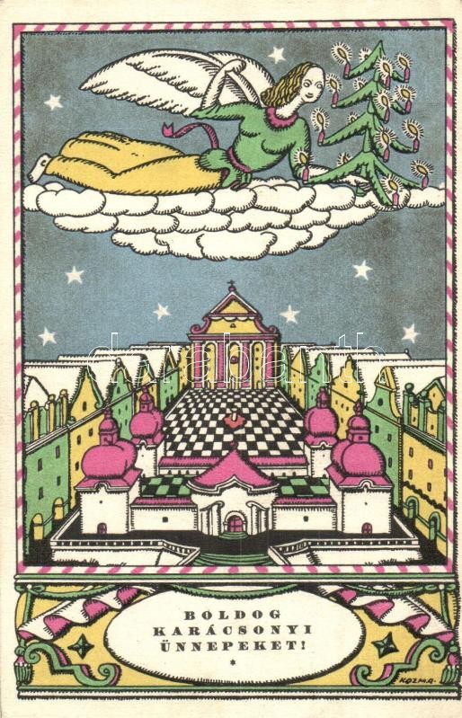 Leírás: Boldog Karácsonyi Ünnepeket! Nyomtatta és kiadja Kner Izidor, Gyoma / Christmas greeting art postcard s: Kozma Lajos (EK)