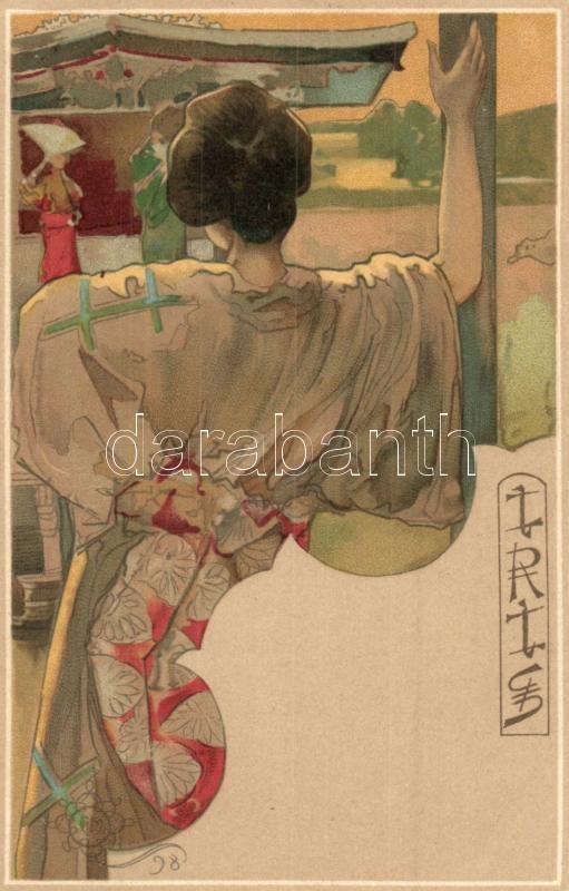Leírás: Iris / Japanese geisha, opera. Italian Art Nouveau postcard. Officine G. Ricordi & C. 020. litho s: Giovanni Maria Mataloni