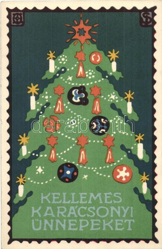 Kellemes Karácsonyi Ünnepeket! Az Orsz. Magy. Kir. Iparművészeti iskola levelezőlapjai. Ungarische Werkstätte no. 2021. kiadja Rigler József Ede Rt. / Hungarian art postcard, Christmas