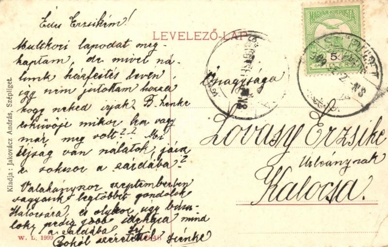 Leírás: 1909 Szépliget, Schönau, Gajdobra; Fő utca, községháza, Kálvária utca. W.L. 1999. Kiadja Jákovácz András / Hauptgasse, Gemeindehaus / streets, town hall (EK)
