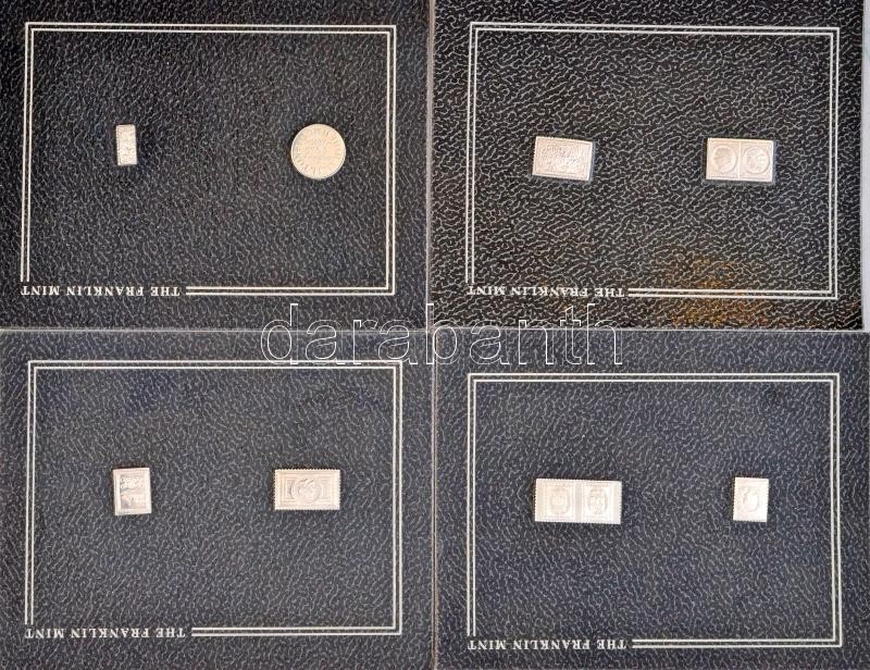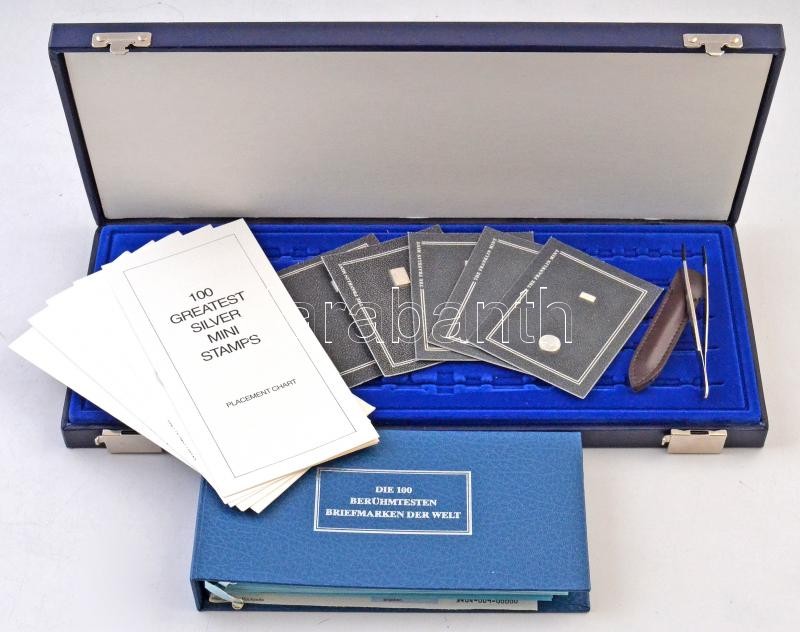 Amerikai Egyesült Államok 1981-1983. "A világ 100 leghíresebb bélyege" 100db-os miniatűr Ag emlékérem gyűjtemény, bontatlan eredeti csomagolásban, német nyelvű leírással, csipesszel és dísztokkal T:1,PP / USA 1981-1983. "Die 100 berühmtesten Briefmarken der Welt (The 100 most famous Stamps of the World)" 100pcs of miniature Ag commemorative medallions, in unopened package, with german language information sheets, a tong and display case C:UNC,PP