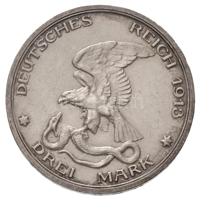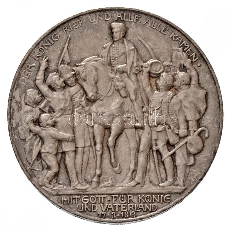 Német Államok / Poroszország 1913A 3M Ag "Napóleon legyőzésének 100 éves évfordulója" (16,66g) T:2 kis patina, kis ph. / German States / Prussia 1913A 3 Mark Ag "100 Years - Defeat of Napoleon" (16,66g) C:XF small patina, small edge error
