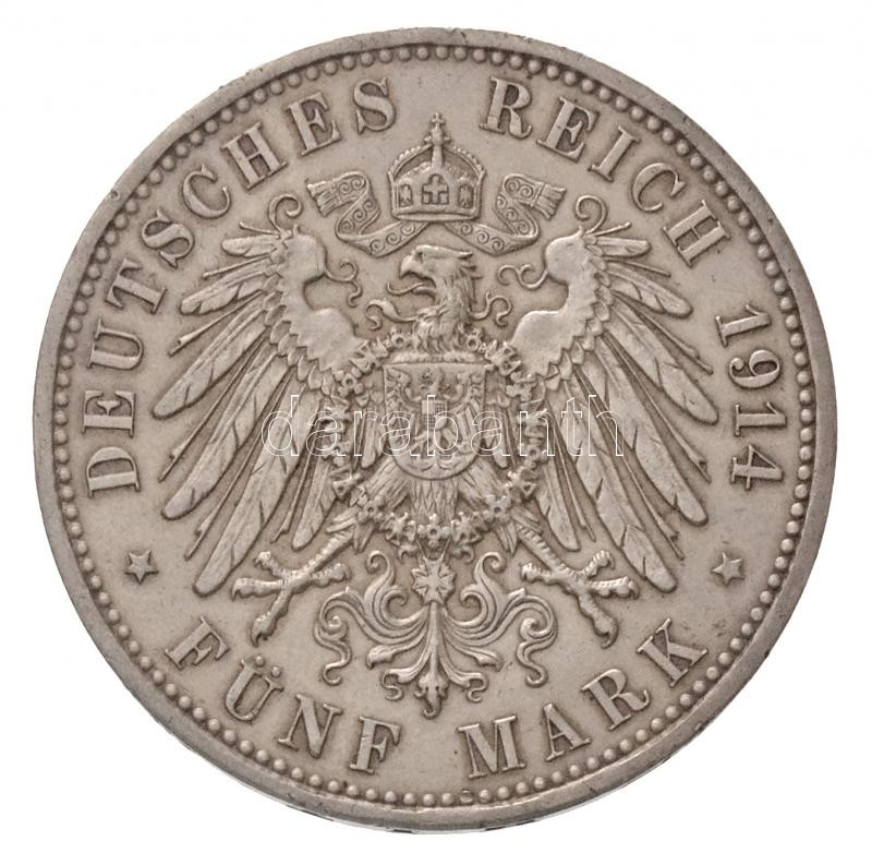 (2... https://www.darabanth.com/hu/30-Nagyaukcio/30.1/Numizmatika/Kulfoldi-fem-es-ezustpenzek~12145/Nemet-Birodalom-Poroszorszag-1914A-5M-Ag-II-Vilmos--27-7g-T2-German-Empire-Prussia-19~II1847297
