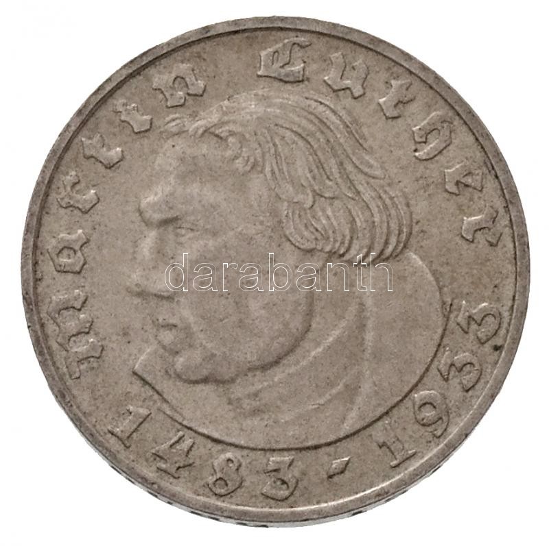 Német Harmadik Birodalom 1933D 2M Ag "Luther Márton születésének 450. évfordulója" (8g) T:2 / German Third Reich 1933D 2 Mark "450th Anniversary - Birth of Martin Luther" (8g) C:XF