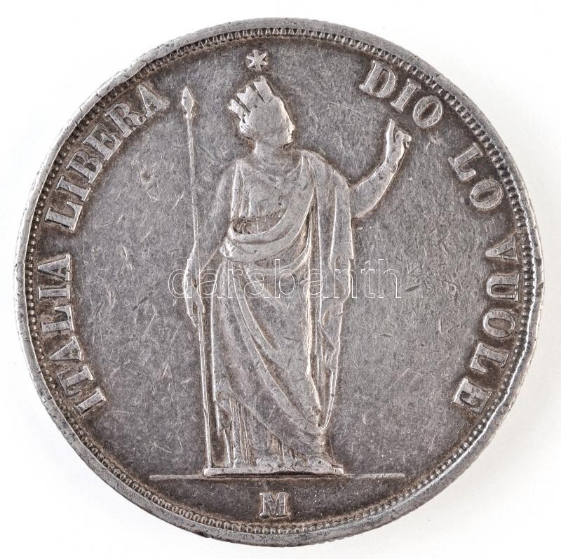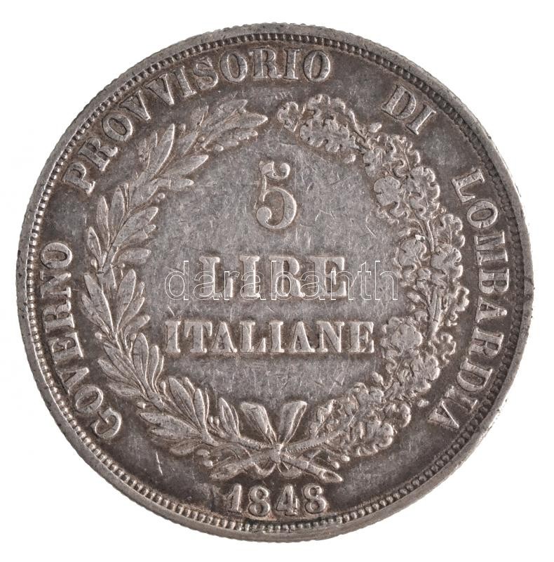 Olasz Államok / Lombardia-Velence / Forradalmi kormány 1848M 5L Ag (24,86g) T:2- ph. /