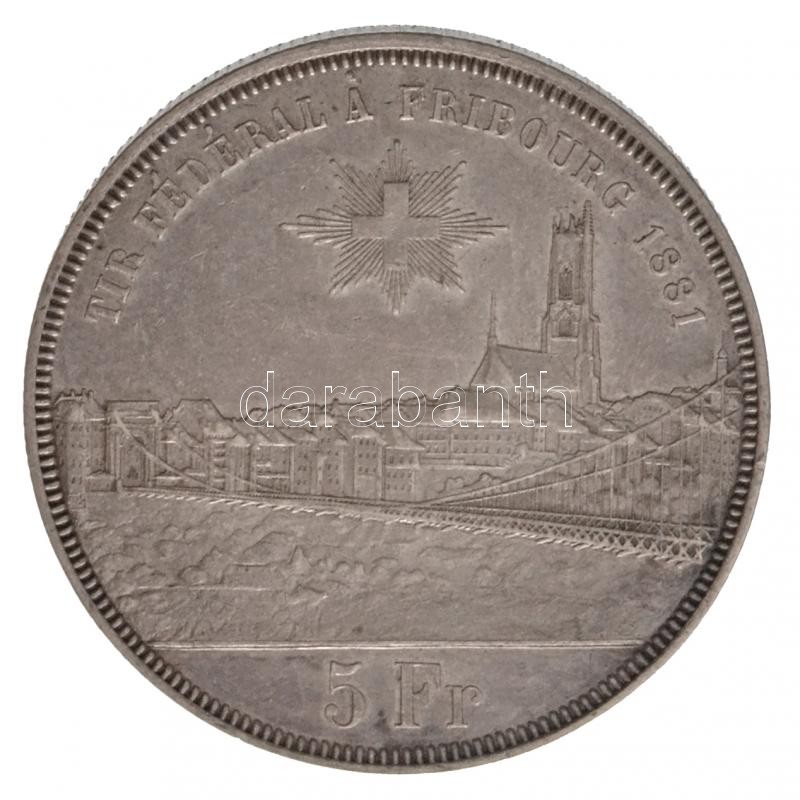 Svájc 1881. 5Fr Ag "Fribourg" (24,96g/0.835) T:2 / Switzerla... https://www.darabanth.com/hu/30-Nagyaukcio/30.1/Numizmatika/Kulfoldi-fem-es-ezustpenzek~12145/Svajc-1881-5Fr-Ag-Fribourg-24-96g0835-T2-Switzerland-1881-5-Francs-Ag-Fribourg-24-96g~II1853817