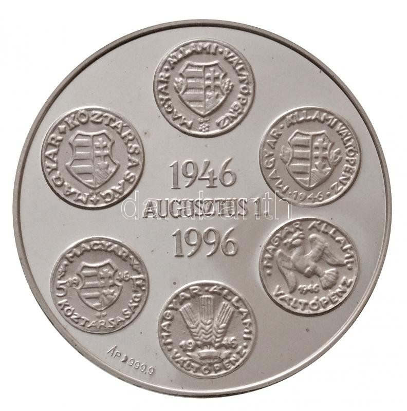 Hungary 1996. "50th Anniversary of Forint / 1st August 1946. - 1996" hallmarked Ag commemorative medal in MNB case (31,43g/0.999/42mm) C:PP
