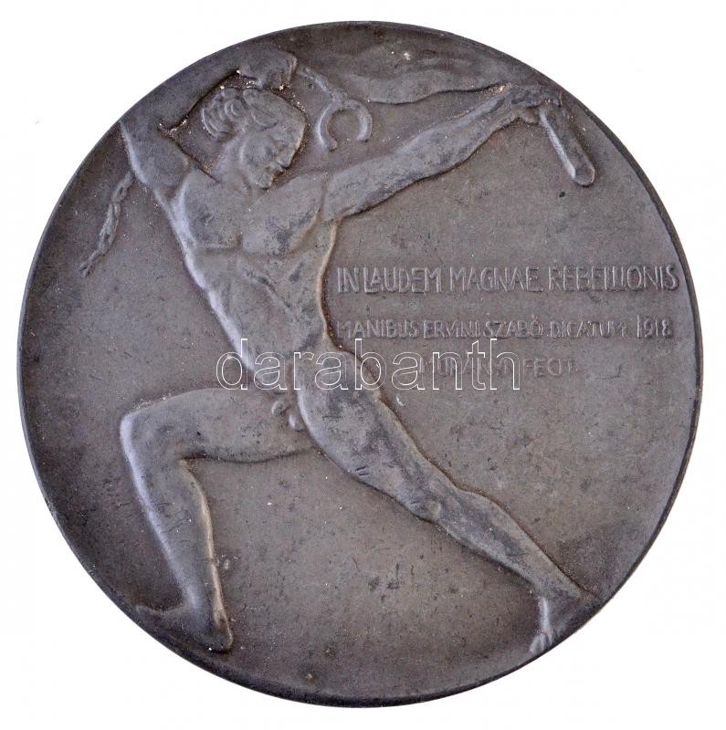 Murányi Gyula (1881-1920) 1918. "In Laudem Magnae Rebellionis Manibus Ervini Szabó Dicatum 1918 - Murányi Fecit" hadifém plakett (97,61g/72mm) T:2 / Hungary 1918. "In Laudem Magnae Rebellionis Manibus Ervini Szabó Dicatum 1918 - Murányi Fecit" war metal plaque. Sign.: Gyula Murányi (97,61g/72mm) C:XF