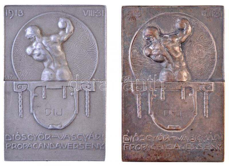 Sződy Szilárd (1878-1939) 1913. "Diósgyőr-Vasgyári Propaganda Verseny" Ag és Al emlékplakett (87,65g az Ag/46x70mm) T:2 /