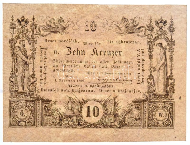Adamo G92 https://www.darabanth.com/hu/30-Nagyaukcio/30.1/Numizmatika/Magyar-es-kulfoldi-bankjegyek~12141/1860-10kr-TI-Hungary-1860-10-Kreuzer-CUNC-Adamo-G92~II1858715
