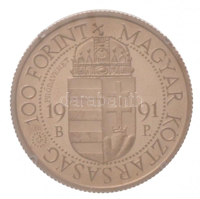 1991. 100Ft Cu-Ni "II. János Pál pápa látogatása" jelzett pr... https://www.darabanth.com/hu/30-Nagyaukcio/30.1/Numizmatika/Magyar-es-magyar-verdejelu-fem-es-ezustpenzek~12142/1991-100Ft-Cu-Ni-II-Janos-Pal-papa-latogatasa-jelzett-probaveret-TPP-Hungary-1991-100-~II1858531