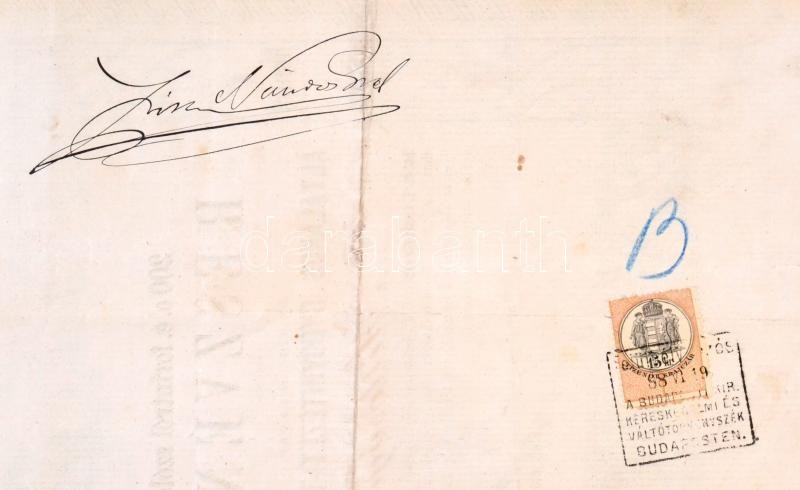 Hungary / Pest 1869. "The first Hungarian Sanatorium Society" share about 200 Forints for count Nándor Zichy, with embossed stamp and coupons, cancelled with holes C:F tears on edges