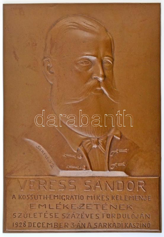 Seregély Dezső (1867-1948) 1928. "VERESS SÁNDOR - A KOSSUTH-EMIGRÁCIÓ MIKES KELEMENJE EMLÉKEZETÉNEK SZÜLETÉSE SZÁZÉVES FORDULÓJÁN 1928 DECEMBER 3-ÁN A SARKADI KASZINÓ" egyoldalas Br plakett (684g/250x172mm) T:1- / Hungary 1928. "VERESS SÁNDOR - A KOSSUTH-EMIGRÁCIÓ MIKES KELEMENJE EMLÉKEZETÉNEK SZÜLETÉSE SZÁZÉVES FORDULÓJÁN 1928 DECEMBER 3-ÁN A SARKADI KASZINÓ (Sándor Veress - For the 100th Anniversary of birth the Kelemen Mikes of the Kossuth-emigration. In 3 December 1928, the Casino of Sarkad)" one-sided Br plaque. Sign.: Dezső Seregély (684g/250x172mm) C:AU