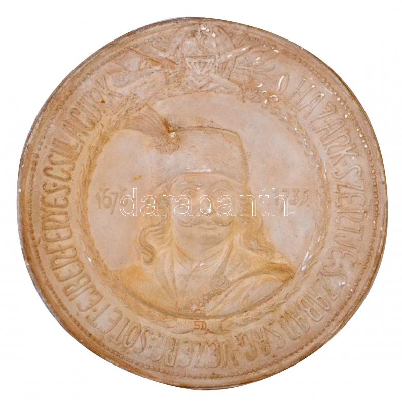 Seregély Dezső (1867-1948) DN "Hazánk szentje szabadság vezére sötét éjben fényes" II. Rákóczi Ferencet ábrázoló gipsz plakett (253g/165mm) T:1-,2 kis kopások / Hungary ND "Hazánk szentje szabadság vezére sötét éjben fényes (The Saint of the Country, Leader of Freedom, Shining in the Dark Night" gypsium plaque depicting Ferenc Rákóczi II. Sign.: Seregély Dezső (253g/165mm) C:AU,XF small abrasions