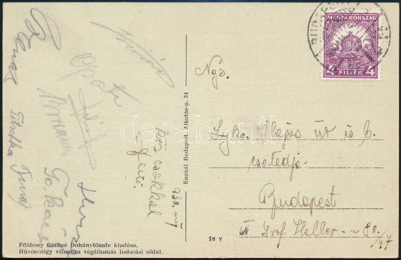 cca 1930 A Budai 33 labdarúgó csapatának játékosok aláírása képeslapon (pl.: Lyka Antal Opati. Titschka (Titkos), Takács stb...) Lyka Antal által hazaküldve. / cca 1930 Signed postcard of the Budai 33 team