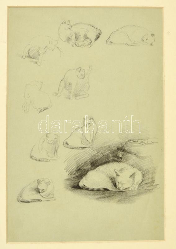 Jelzés nélkül: Cica tanulmányok. Ceruza, papír, 28×12 cm https://www.darabanth.com/hu/300-Gyorsarveres/300.0/Festmeny-mutargy-papirregiseg-egyeb/Festmenyek-es-grafikak~1/Jelzes-nelkul-Cica-tanulmanyok-Ceruza--papir-28C39712-cm~II1609396