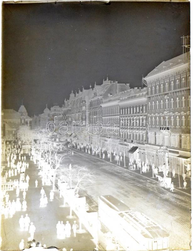 Leírás: 1908 Budapest, Rákóczi úti villamos, feliratozott üveglemez negatív, 12x9 cm