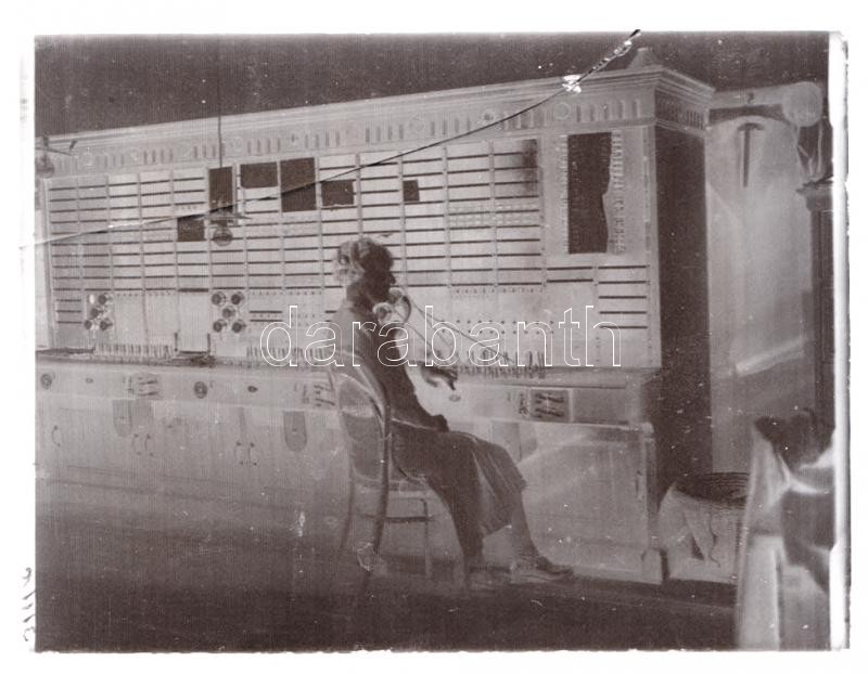 Leírás: 1917 Szolnok, telefonközpont kapcsoló terme, üveglemez negatív, Kerny István (1879-1963) hagyatékából, 9x12 cm