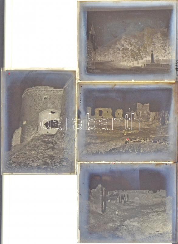 Leírás: 1929 Sümegi vár, 6 db vintage üveglemez negatív Kerny István (1879-1963) hagyatékából, feliratozott felvételek, 9x12 cm