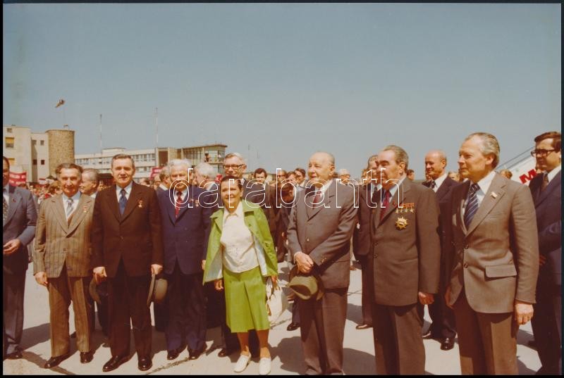 1979 Brezsnyev magyarországi látogatása, színes sajtófotó (Fotohronik ... https://www.darabanth.com/hu/300-Gyorsarveres/300.0/Festmeny-mutargy-papirregiseg-egyeb/Foto~19/1979-Brezsnyev-magyarorszagi-latogatasa-szines-sajtofoto-Fotohronik-Tass-hatuljan-felira~II1608202