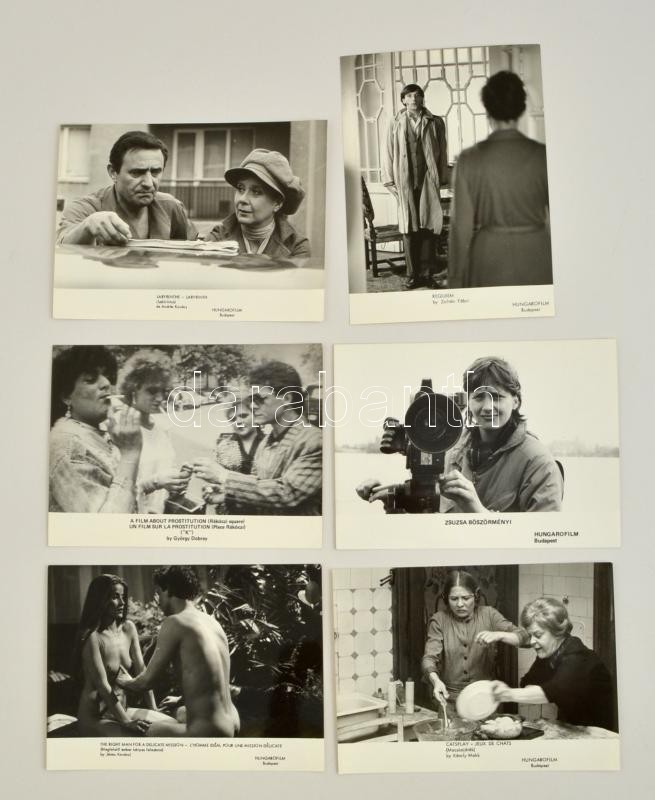 Leírás: 6 db Hungarofilm filmfotó, feliratozva, 13,5×18 cm