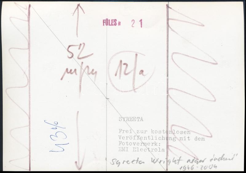 Syreeta Wright (1946-2004) amerikai énekesnő, sajtófotó, hátoldalon fe... https://www.darabanth.com/hu/300-Gyorsarveres/300.0/Festmeny-mutargy-papirregiseg-egyeb/Foto~19/Syreeta-Wright-1946-2004-amerikai-enekesno-sajtofoto-hatoldalon-feliratozva-11x17-cm~II1607930