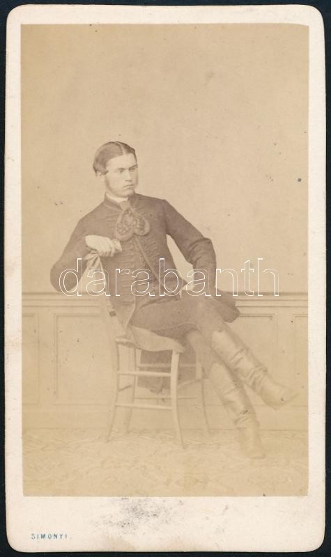 Leírás: cca 1860 Simonyi pesti fényirdájában készült, vizitkártya méretű fénykép, szív alakú nyakkendő a fiatalember nyakában, 10,5x6 cm
