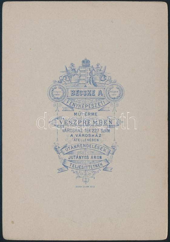 Leírás: cca 1884-1907 A veszprémi várhegy, keményhátú fotó Becske Adolf (1850-1923) veszprémi műterméből, 11×16 cm