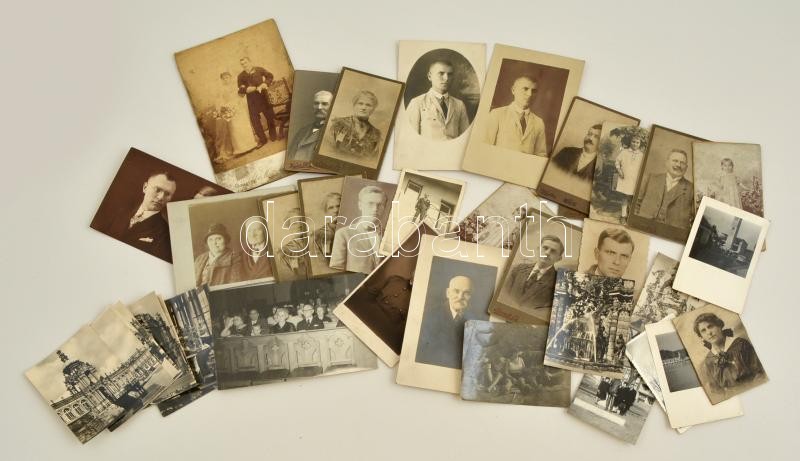 Leírás: cca 1900-1960 Vegyes fotó tétel, összesen 39 db, közte műtermi portrék, városképek, vegyes minőségben, 7,5x5,5 cm és 16,5x10,5 cm közti méretben
