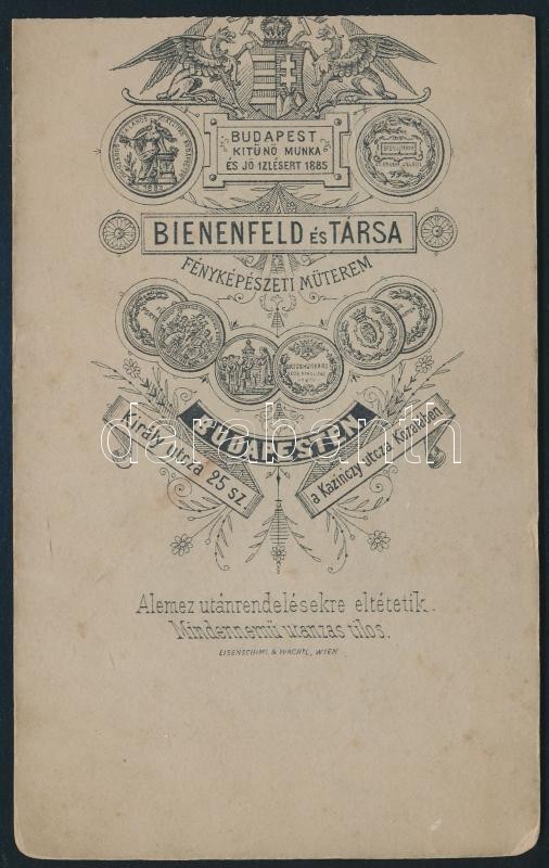 Leírás: cca 1900 A budai Várhegy, előtérben a Fiume szállóval, keményhátú fotó Bienenfeld és társa budapesti műterméből, 7,5×12,5 cm
