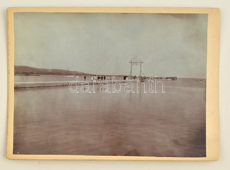 Leírás: cca 1900 Balaton, kikötő, kartonra kasírozva, 12x16 cm