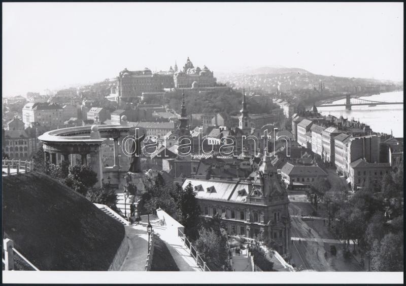 Leírás: cca 1925 Budai látkép a vár alatti területről, vintage negatívról készült mai nagyítás, 18x25 cm