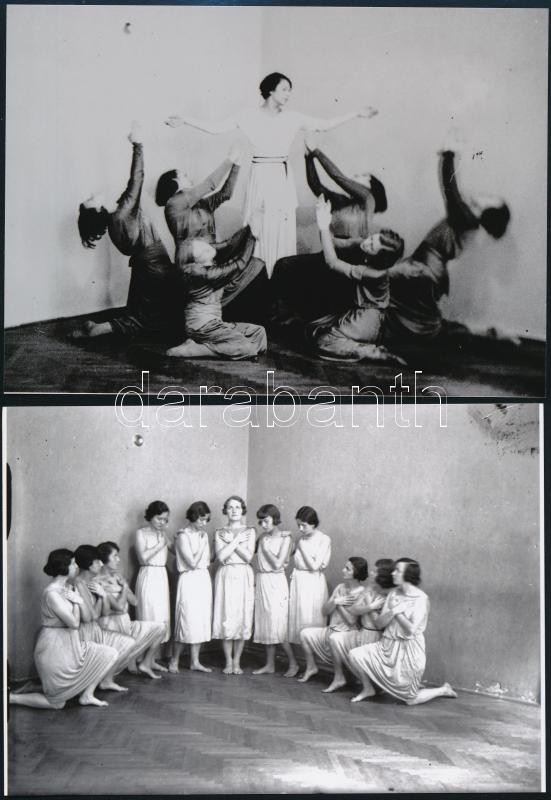 Leírás: cca 1925 Kerny István (1879-1963) hagyatékában őrzött vintage üveglemez negatívokról készült mai nagyítások, 2 db mozgásművészeti kompozíció, 13x18 cm
