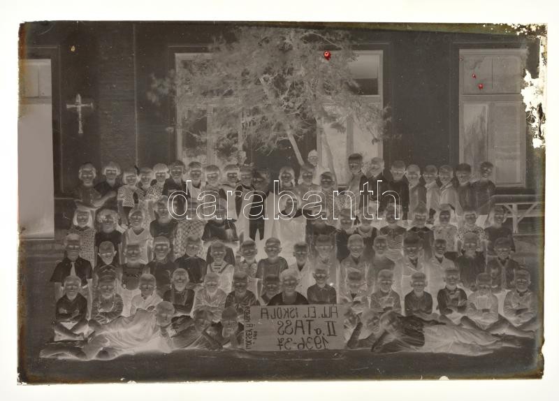 Leírás: cca 1935 Tass - iskolai osztály, műhelyek, gazdálkodók, Lőcsei Árpád (?-?) kecskeméti vándorfényképész hagyatékából 13 db üveglemez negatív, 9x13 cm