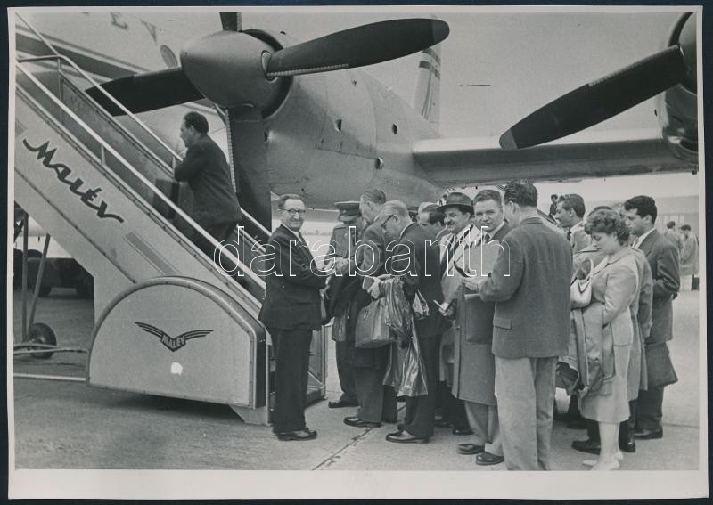 cca 1950-1960 Beszállás a MALÉV repülőgépbe, Tiszavölgyi József pecsét... https://www.darabanth.com/hu/300-Gyorsarveres/300.0/Festmeny-mutargy-papirregiseg-egyeb/Foto~19/cca-1950-1960-Beszallas-a-MALEV-repulogepbe-Tiszavolgyi-Jozsef-pecsettel-jelzett-fotoja-~II1607900