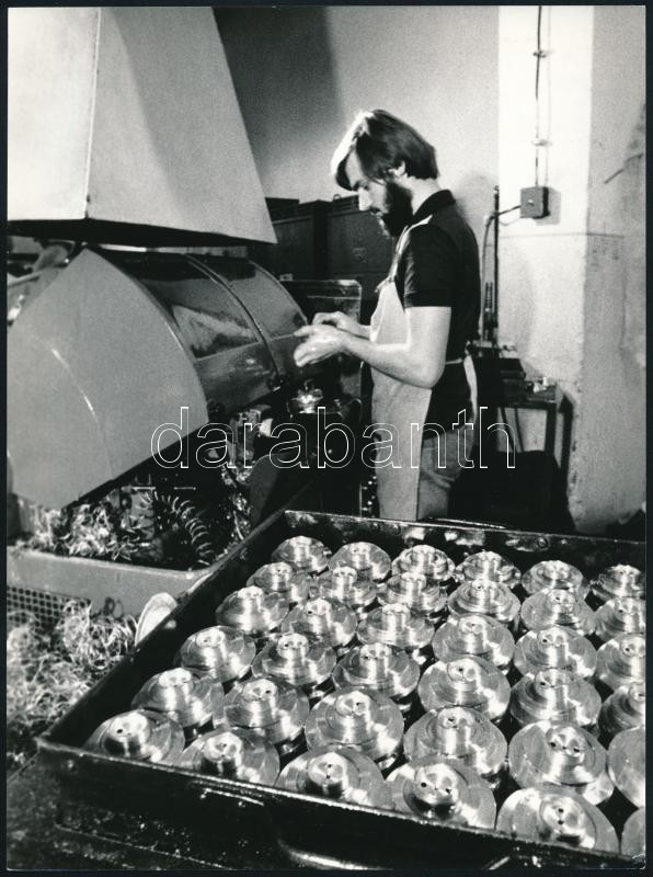 Leírás: cca 1973 Vincze János (1922-1998) kecskeméti fotóművész 3 db vintage fotója a BRG magnetofon gyárról, kettő jelzett, 24x18 cm és 15x22,5 cm