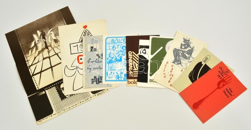 Leírás: 1974-1983 Buék nyomtatványok,képzőművészek aláírásokkal, összesen:10 db