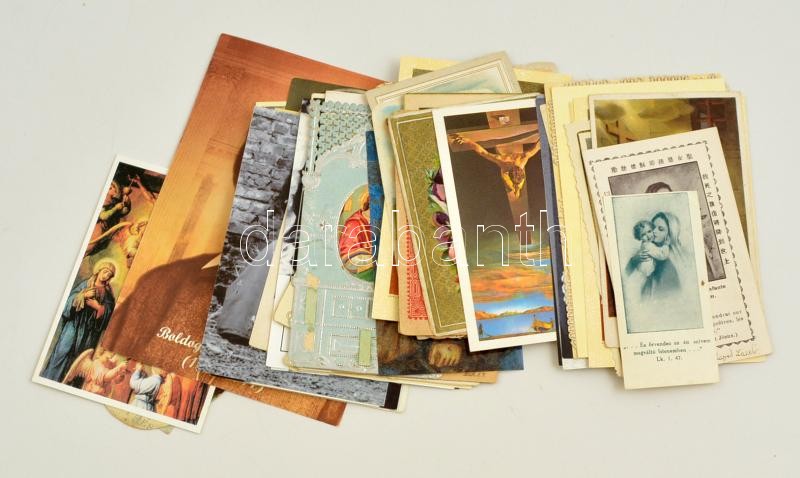 Leírás: Vegyes szentkép tétel, összesen 60 db, köztük régiek és modernek, vegyes minőségben, 8x4 és 15x10,5 cm közti méretben