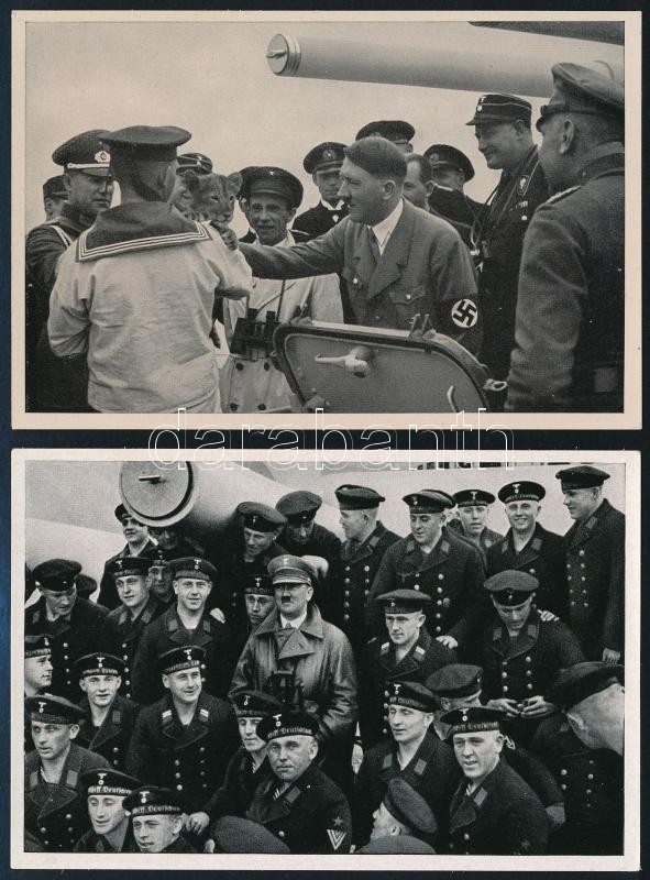Leírás: cca 1940 Adolf Hitler matrózük között két cigaretta gyűjtőkép / Hitler with the navy 2 photos