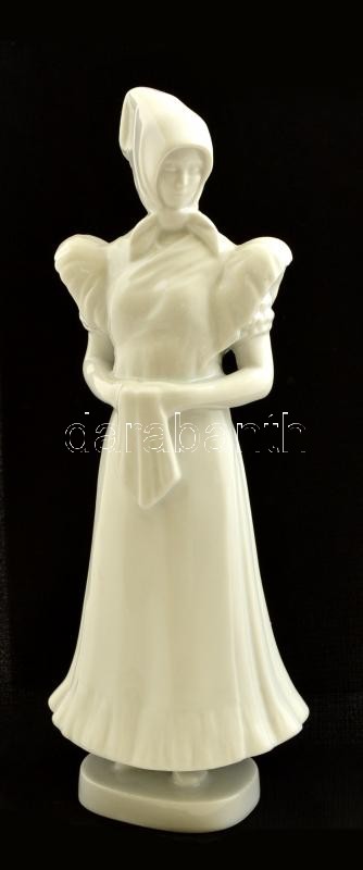 Leírás: Népviseletes leány, fehérmázas porcelán, alján lepattanásokkal, kis mázhibákkal, m: 29,5 cm