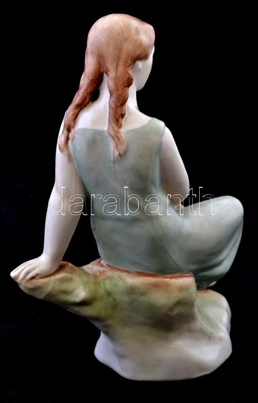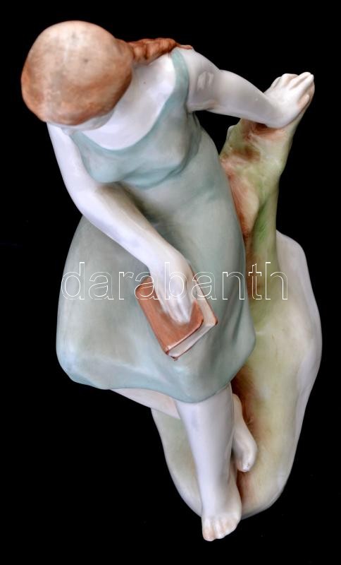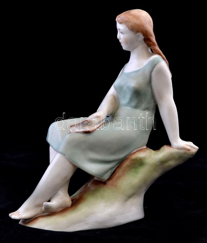 Leírás: Zsolnay lány könyvel, kézzel festett, jelzett (tercia), hibátlan, m: 17 cm