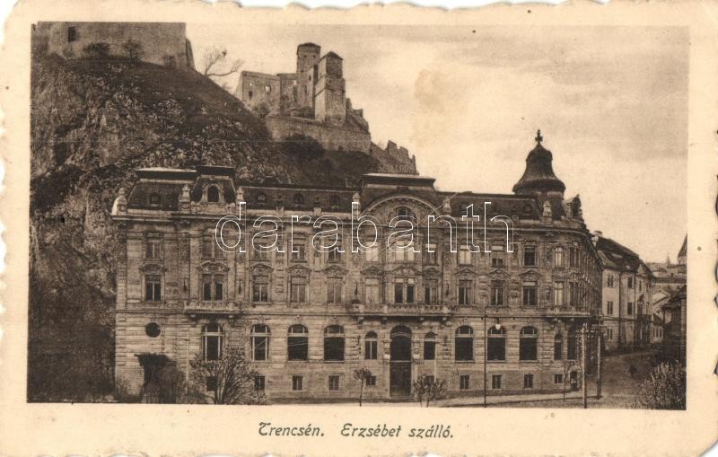 Trencsén, Trencín; Erzsébet szálloda. Szold E. kiadása / hotel (Rb) https://www.darabanth.com/hu/300-Gyorsarveres/300.0/Kepeslapok/Felvidek~300008/Trencsen-Trencin-Erzsebet-szalloda-Szold-E-kiadasa-hotel-Rb~II1610705
