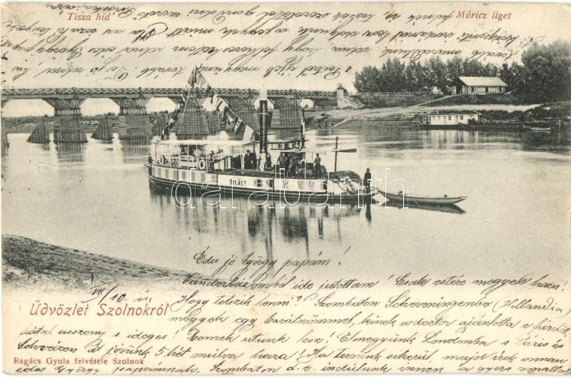 Az SS Sirály vontató gőzhajó Szolnokon a Tiszán. Tisza híd, Móricz liget a háttérben. Ragács Gyual felvétele / Hungarian tugboat, towing steamship (EK)