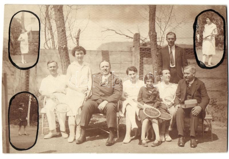Leírás: 1928 Ungvár, Uzhorod; teniszpálya, teniszező hölgyek és urak, csoportkép / tennis court, ladies playing tennis. group photo (Rb)
