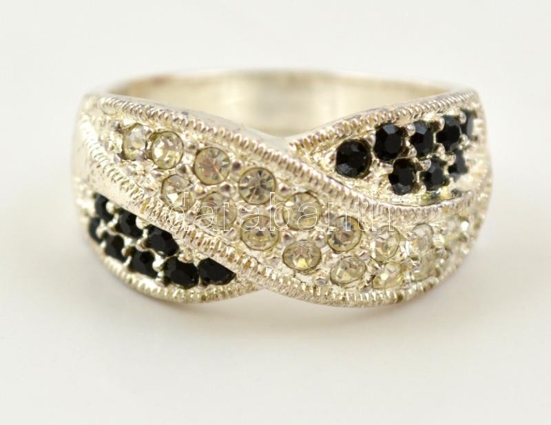 Leírás: Ezüst(Ag) gyűrű apró szintetikus kövekkel díszítve, jelzett, méret: 56, bruttó: 5,5 g