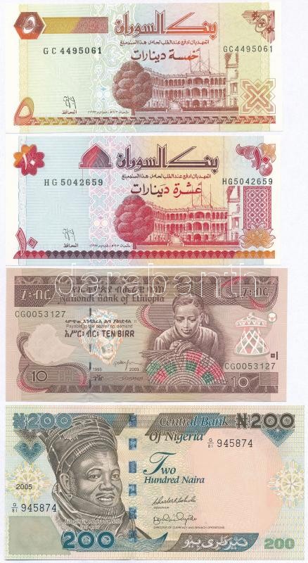 Mixed: Sudan 1993. 5 Dinars + 10 Dinars + Nigeria 2005. 20 Naira + Ethiopia 2003. 10 Birr C:UNC,AU