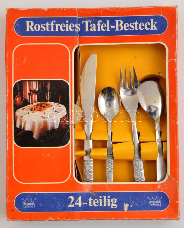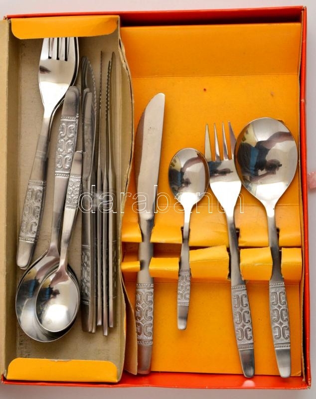 Leírás: 24 darabos étkészlet, rozsdamentes, saját dobozában, jó állapotban