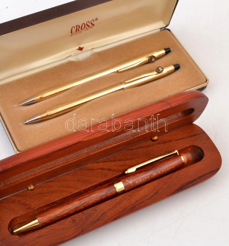 Leírás: Cross golyóstoll és töltőceruza + fa borítású golyóstoll, betétcserére szorul, mindegyik tokban, összesen 3 db